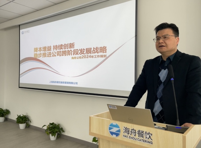2024年3月9日,上海海舟餐飲服務(wù)管理有限公司2024年度經(jīng)營(yíng)策略發(fā)布會(huì)順利召開(kāi)。董事長(zhǎng)周駿出席會(huì)議并發(fā)布海舟公司2024年經(jīng)營(yíng)策略,統(tǒng)一部署安排新一年度公司各項(xiàng)重點(diǎn)工作。