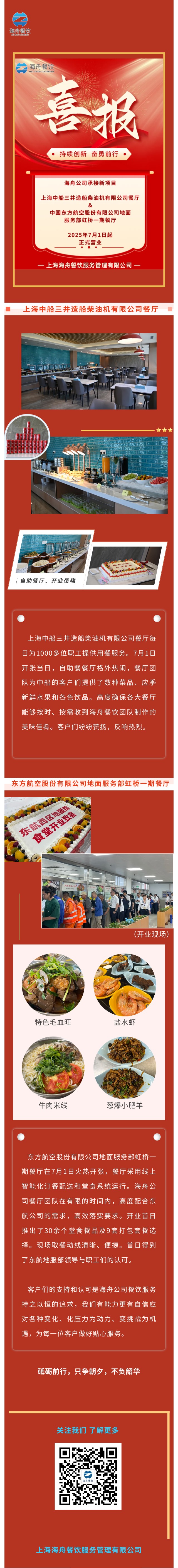 上海中船三井造船柴油機(jī)有限公司餐廳&東方航空股份有限公司地面服務(wù)部虹橋一期餐廳開(kāi)業(yè)